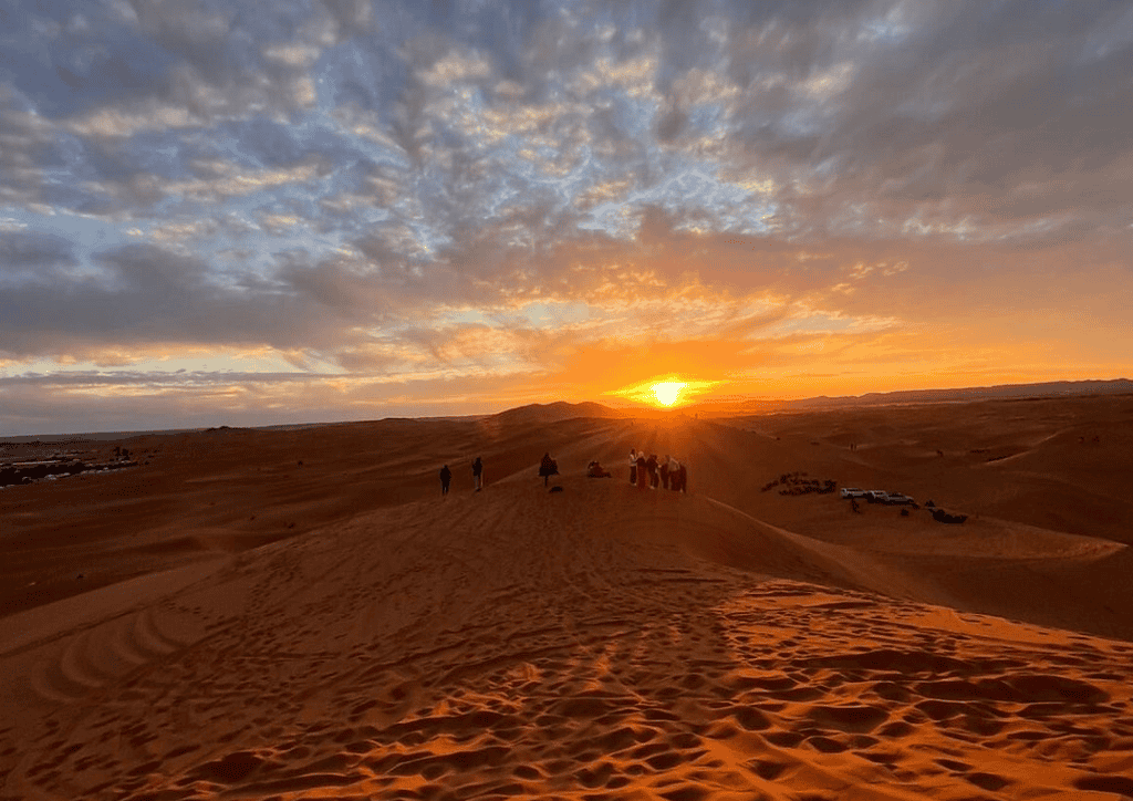 – Witnessing the sunrise and sunset over the golden sands of Merzouga